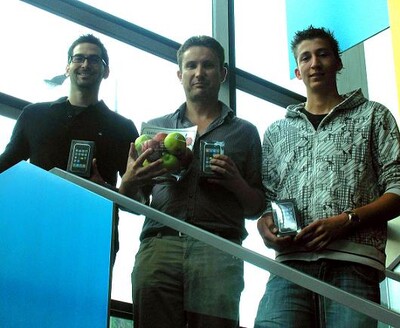 Im Bild v.l.n.r.: Die Gewinner eines iPhones Thomas Ortner, Peter Santa, Thomas Bauer