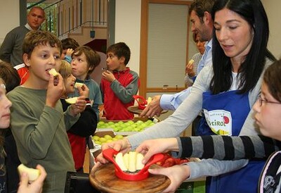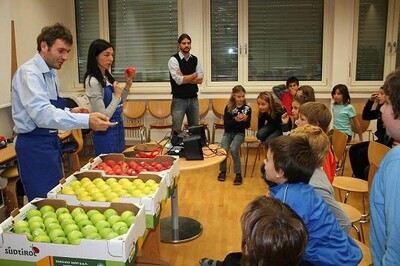In diesen Tagen ist ein breit angelegtes Informationsprojekt über den Apfel in den Südtiroler Volksschulen gestartet. 19 Obstbäuerinnen und Obstbauern werden in 260 deutschen und italienischen Volksschulen in den vierten Klassen über den Südtiroler Apfel ggA informieren. Die Schulaktion wird in Blöcken bis Februar durchgeführt. 3.250 SchülerInnen und mindestens 260 Lehrpersonen sind in das Projekt, das die EOS der Handelskammer Bozen in Zusammenarbeit mit dem Pädagogischen Institut organisiert, eingebunden. Die Bäuerinnen und Bauern, welche den Unterricht über den Apfel durchführen, wurden eigens dafür geschult. Sie zeigen den Viertklässlern einen Film über den Obstanbau, erklären, was hinter dem Marienkäfer in der Südtiroler Qualitätsmarke steckt und geben einen Einblick in die Sortenvielfalt und die Arbeit eines Obstbauern. Dann können die Kinder die Sorten Golden, Gala und Granny verkosten. Denn es geht vor allem auch darum den gesundheitlichen Aspekt des Apfels und dessen vielfältigen Verwendungszweck aufzuzeigen. Anschauungsmaterial, eine Lernmappe und ein Infoheft sorgen dafür, dass der Unterricht lebendig wird. Mit Rätsel, Malvorlagen, Memory, Rechenaufgaben, Bastelideen und einem Apfellied sollen die Kinder spielerisch an das Thema Apfel herangeführt werden. „Ziel ist es, den Volksschülern den Apfel als gesunde Jause schmackhaft zu machen und sie für den Südtiroler Apfel zu begeistern. Die Kleinen sollen die Arbeit der Obstbauern kennen lernen und verstehen, warum Äpfel gesünder sind als beispielsweise Süßigkeiten. Wir wollen so den jungen Konsumenten sowie den Lehrern eine Orientierungshilfe bei ihren Konsum- und Kaufentscheidungen geben.“, erklärt Maria Sigmund, die Projektleiterin bei der EOS.
