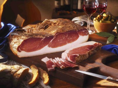 Im Bild: Der Bauernspeck vom Schlegel wird in Zukunft am grünen Trägersteg des Südtiroler Speck g.g.A. und der Zusatzbezeichnung „Bauernspeck“ erkennbar sein.