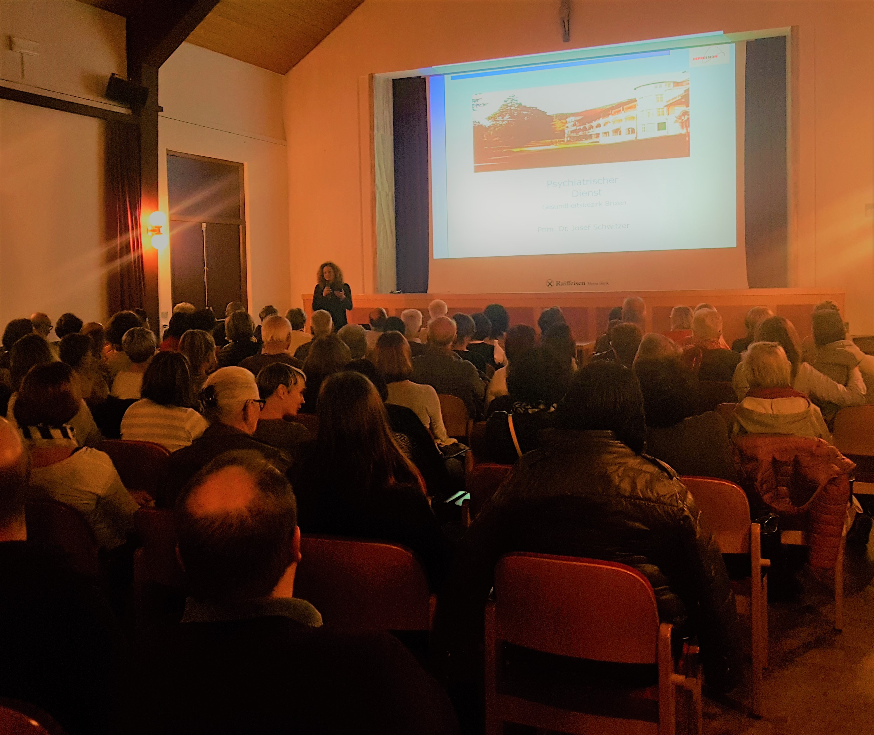 Depression ist keine Geisteskrankheit, sondern eine Gemütserkrankung und sie kann jeden treffen. Frauen doppelt so häufig wie Männer. So die Ausführungen des Experten. Der heutige Stress, die Überlastung durch Reizüberflutung, der Leistungsdruck usw. führen zu einer Zunahme an Betroffenen. Die Symptome können sehr unterschiedlich sein: Freud- und Antriebslosigkeit, Gefühlslosigkeit, Schlafstörungen, Störung der Genussfähigkeit, oft Rücken- oder Kopfschmerzen oder andere körperliche Beschwerden. Die Symptome sind für den Betroffenen ungeheuer schmerzvoll, doch für den Außenstehenden schwer zu erkennen. Depression ist die totale innere Einsamkeit. Die Einsamkeit des Leidens ist ein Teil der Krankheit selbst. Depressionen können meistens gut behandelt werden und zwar mit Psychotherapie, Medikamenten und begleitenden Maßnahmen wie Bewegung, Physiotherapie und nicht zuletzt der Teilnahme an Selbsthilfegruppen (Bsp. Verein Lichtung). Hilfe bietet auch der Psychiatrische Dienst. „Ich habe über Jahre an schwerer Depression gelitten. Viele Tage habe ich mit dem Freitod gerungen und von Tag zu Tag entschieden: Heute lebe ich noch. Geholfen hat mir letztendlich, dass ich mir täglich eine Struktur gebe, mir Aufgaben für jeden Tag vornehme, aber mich nicht überlaste. Und es ist wichtig, sich Hilfe zu holen, denn das Alleinsein ist sehr schlimm und erdrückend. Freunde sind wichtig und auch die Selbsthilfegruppe sowie das Bewusstsein, dass ich selbst auch an mir arbeiten muss. Es gibt immer einen Ausweg, eine Lösung – man darf sich nur nicht aufgeben.“ erzählt eine Betroffene bei dem Vortrag in Deutschnofen.