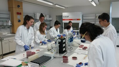 Studenten der biomedizinischen Labortechnik im Praxisunterricht