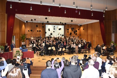 im Bild 1: Der Hutwurf war der Höhepunkt der feierlichen Diplomübergabe