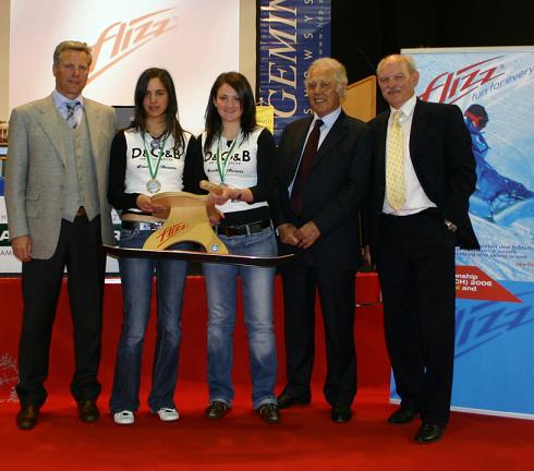 v.l.n.r. Günther Messner (Fa. Flizzza), Petra Sulzenbacher (Weltmeisterin), Sabine Plant (Vizeweltmeisterin), Karl Pichler (Fa. Flizzza) und Christoph Fuchsbrugger (Fa. Flizzza) bei der Pressekonferenz.