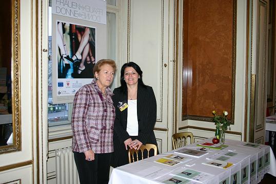 Maria Rauch-Kallat (Bundesministerin für Gesundheit und Frauen) und Silvia Schroffenegger (Projektmitarbeiterin des Unternehmerverbandes)
