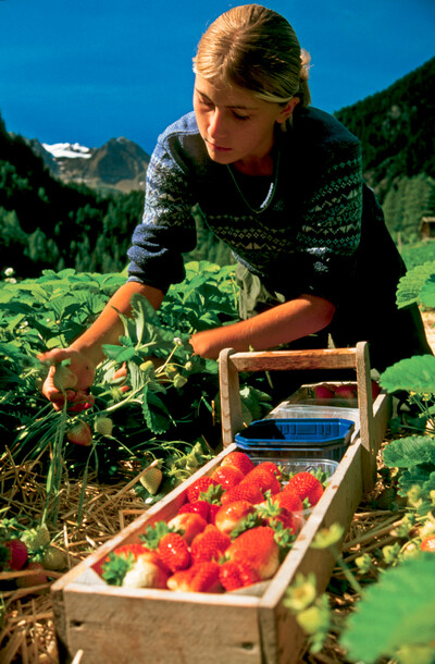 Im Bild 1: Die Erdbeerernte im Martelltal