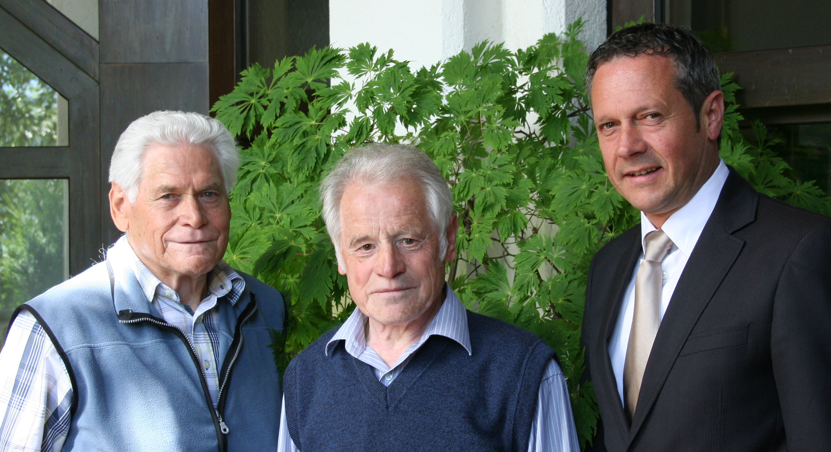 Im Bild 1 von links: Hans Mahlknecht (Altbürgermeister der Gemeinde Karneid und Initiator des Museums), Franz Mahlknecht (Kustos des Museums) und Albin Kofler (Bürgermeister der Gemeinde Karneid)