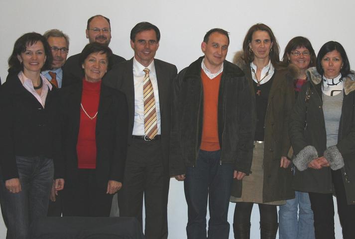 Maria Sparber (KVW), Dr. Heinrich Oberschmied (Direktor Amt für Vorsorge und Sozialversicherung), Maria Kusstatscher (Landesobfrau KVW), Werner Steiner (Bezirksvorstand KVW Pustertal), Richard Theiner (Landesrat Sozialwesen), Kurt Conrater, Clara Ellecosta, Ingrid Götsch und Doris Oberjakober (Einstufungteam).