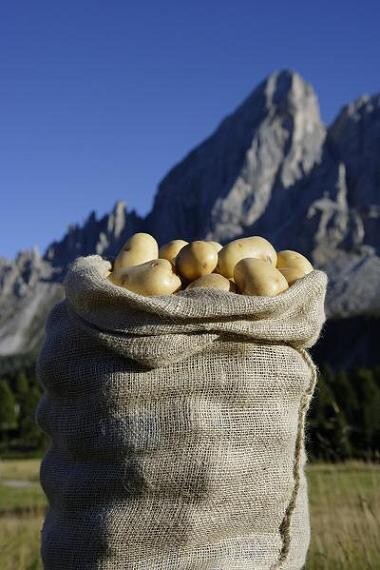 Die Kartoffeln mit dem Südtiroler Qualitätszeichen werden vor allem im Pustertal und Eisacktal angebaut. Warme sonnige Tage, kühle Nächte und gute, leichte Böden schaffen die idealen Bedingungen für beste Kartoffelqualität. Sie reifen langsamer und sind deshalb schmackhafter. Südtirols Kartoffeln zeichnen sich vor allem durch einen vergleichsweise hohen Vitamin C-Gehalt aus. Die Spätkartoffeln können sehr gut über den Winter gelagert werden. Für den Kartoffelanbau werden nur ausgewählte Saatkartoffeln verwendet. Es gibt mehligkochende, vorwiegend festkochende und festkochende Kartoffeln. Die Südtiroler Kartoffeln werden getrennt nach Sorten und Konsistenz abgepackt. Sie werden nach Kocheigenschaften mit farbigen Sackanhängern gekennzeichnet: gelb für mehligkochende, rot für vorwiegend festkochende und grün für festkochende Kartoffeln. Auf diese Weise kann der Verbraucher, die für die jeweilige Zubereitungsart am besten geeignete Kartoffelsorte wählen: mehligkochende Kartoffeln für Nocken, Püree und Pommes frites, vorwiegend festkochende für Brat- und Röstkartoffeln sowie für Gemüsesuppen, Eintöpfe und im Ofen gebackene Kartoffeln und festkochende für Salate. Kartoffeln mit dem Südtiroler Qualitätszeichen gibt es in den verschiedensten Packungen: in Netze à 2 kg, in Papiertaschen à 2,5 kg und im Raschelsack in unterschiedlichen Größen. Das Qualitätszeichen Südtirol garantiert Herkunft und Qualität. Regelmäßige Kontrollen gewährleisten die Einhaltung eines Pflichtenhefts, welches von der Handelskammer Bozen ausgearbeitet wurde. Die Südtiroler Qualitätskartoffel ist bei der Pustertaler Saatbaugenossenschaft in Bruneck, bei der Melix in Vahrn sowie in ausgewählten Supermärkten erhältlich.