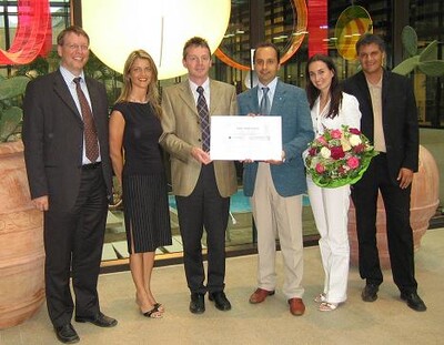 Harald Steier (Berater), Adelheid Stifter (Direktorin der Therme Meran AG), Franz Kaltenbrunner (Auditor), Giorgio Balzarini (Vizepräsident), Manuela Zischg (Qualitätsbeauftragte der Therme Meran AG) und Bernhard Nöckl (Auditor) bei der Übergabe des Zertifikats ISO 9001