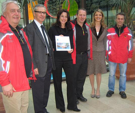 die Übergabe der Gratistickets in der Therme Meran