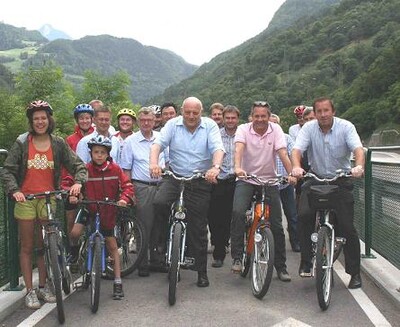 „Mit der Fertigstellung dieses Abschnitts ist der durchgehende Radweg von Bozen zum Brenner fast vollständig realisiert. Radfahrer können nun von Bozen bis nach Kollmann und weiter radeln. Lediglich auf einer Strecke von 400 m muss auf die Staatsstrasse ausgewichen werden. Im März 2010 wir alles zur Gänze fertig sein“, freut sich der Bezirkspräsident. Bei der kleinen Feier waren auch die Vertreter der betroffenen Gemeinden sowie Bauleiter Hans Pfeifer anwesend. Bei der Ansprache dankte Bezirkspräsident Albin Kofler dem Landeshauptmann für die finanzielle Unterstützung und Valter Molon, dem Direktor des Amtes für den Straßendienst Salten-Schlern, sowie Bruno Fait, dem Koordinator für den Straßenbeschilderungsdienst, für deren tatkräftige Unterstützung. Nicht zuletzt ging auch ein Dankeschön an die Eco-center AG, welche die notwendig gewordene Verlegung von Abwasserrohren unter dem Radweg schnellstmöglich umsetzten. Ursprünglich war die Öffnung des Radweges erst zu einem späteren Zeitpunkt vorgesehen. Albin Kofler hatte jedoch auf eine schnellere Fertigstellung gedrängt, da die Route für den Radtourismus in der Region sehr bedeutend ist. „Dies ist uns dank des flexiblen Einsatzes aller Beteiligten gut gelungen“, lobte Kofler die gute Zusammenarbeit.