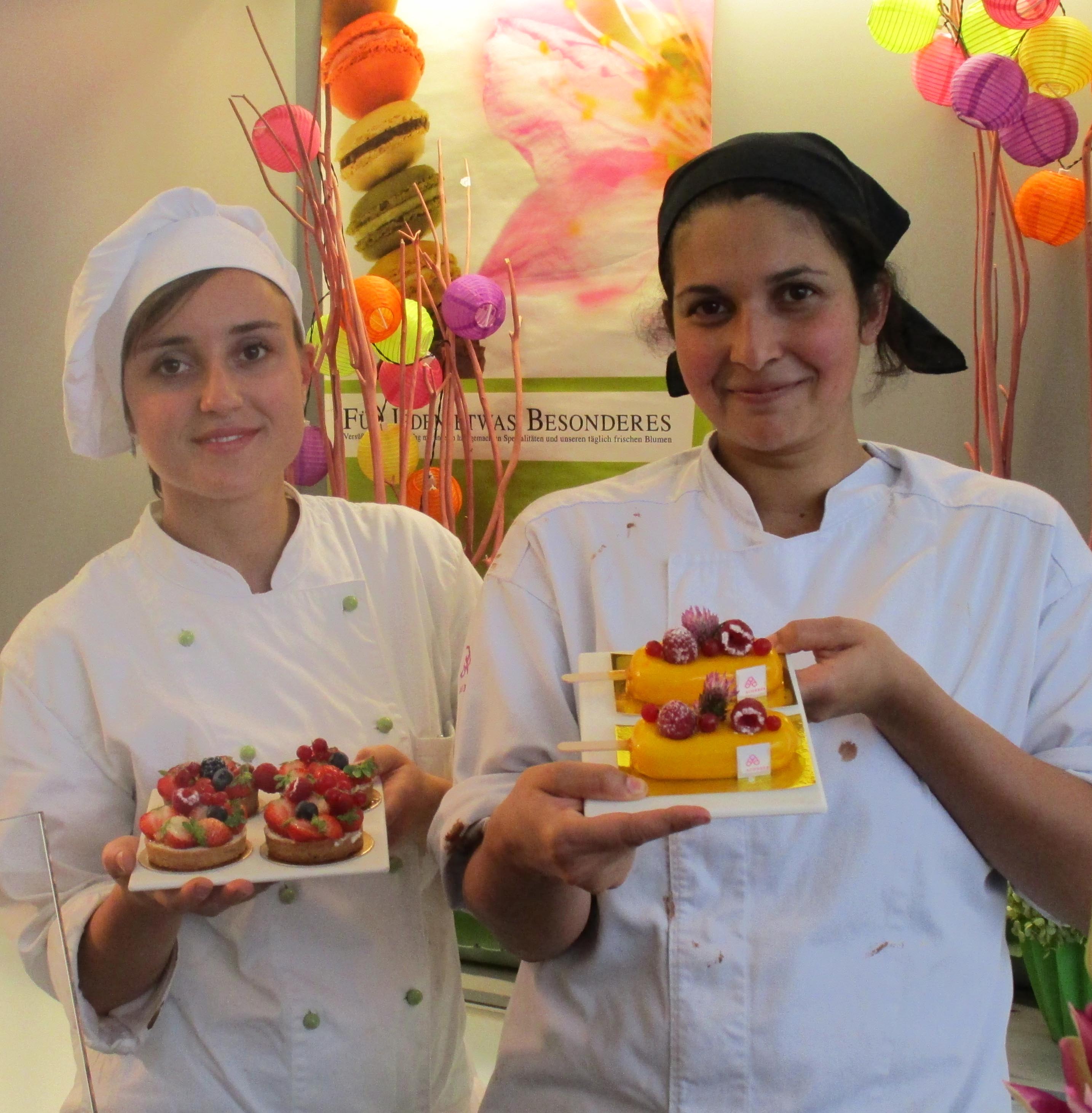 Nella foto da sx a dx: l’apprendista pasticcera Annette Schmaus di Norimberga e Claudia Schmid, responsabile della produzione della Patisserie Acherer a Brunico