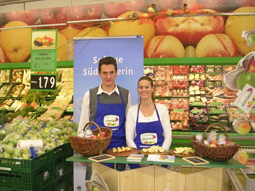 Si è da poco conclusa una vasta campagna promozionale della mela Alto Adige che ha interessato l’intero territorio tedesco. L’iniziativa, organizzata dall’EOS della Camera di Commercio di Bolzano e dal Consorzio Mela Alto Adige, è stata presentata da 20 giovani produttori altoatesini che, in 62 giorni dei 360 totali previsti dalla campagna promozionale, hanno risposto alle domande dei clienti invitandoli a provare le mele altoatesine. La campagna si è svolta in diversi supermercati dei partner commerciali delle aziende operanti nel settore delle mele in Alto Adige, tra cui Metro, Kaufland, Rewe, Tengelmann, Dohle Hit, Globus e Bünting. Ma i giovani produttori altoatesini sono stati presenti anche nel KaDeWe, il centro commerciale più rinomato di Berlino. La campagna promozionale si riprometteva un doppio risultato: convincere il consumatore della qualità del prodotto e fidelizzarlo emozionalmente. Il gradimento dei consumatori è stato molto buono tanto che l’iniziativa è stata estesa a diversi mercati settimanali ad Amburgo, Berlino, Lipsia, Colonia, Monaco e Stoccarda.
