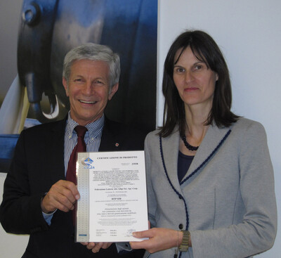 L’Assessore provinciale Hans Berger e Annemarie Kaser, Direttrice della Federazione Latterie Alto Adige, festeggiano il rilascio della certificazione