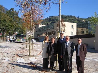 Dr. Adelheid Stifter (Direttrice Terme Merano Spa), Arch. Angelika Margesin (Assessora comunale lavori pubblici e servizi tecnici, urbanistica, viabilità del Comune di Merano), Karl Stricker (tenente dei Vigili urbani di Merano), Manfred König (Presidente Terme Merano SpA), Arch. Massimo Valduga (direzione lavori)