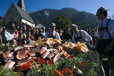 Gli organizzatori della Festa dello Speck 2009 a Funes possono dirsi soddisfatti: il successo della manifestazione è stato a dir poco straordinario. Molte migliaia, infatti, le persone che, in un clima quasi estivo, hanno fatto sentire la loro presenza nei due giorni dell’evento dedicato allo speck con l’etichetta verde. La domenica, in particolare, si sono contate secondo Klaus Messner, direttore dell’Associazione Turistica Val di Funes, non meno di 5.000 presenze.Nelle due giornate di feste sono stati venduti dai 3.500 ai 4.000 kg di Speck Alto Adige IGP. “Il nostro progetto – presentare lo speck Alto Adige IGP con contorno di musica popolare tradizionale, sfilate in costume e giovani Schuhplattler sullo straordinario sfondo delle Odle – è in piena ascesa. Si tratta di un evento di cui beneficia tutta la valle. Oltre al sito della festa, anche gli esercizi ricettivi del circondario sono stati eletti come meta da un gran numero di persone. Quest’anno abbiamo avuto anche la presenza delle telecamere della Bayrische Rundfunk e dell’emittente televisiva ARTE: per la Val di Funes una pubblicità che in altre circostanze non si potrebbe certo permettere”, si rallegra Klaus Messner. Tra gli ospiti, numerosi fan delle tradizioni e della cultura altoatesine provenienti dalla Germania, dall’Austria e dal resto d’Italia. La Festa dello Speck è un’iniziativa curata in comune dall’Associazione turistica Val di Funes, dal Consorzio Speck Alto Adige e dall’EOS (Export Organisation Südtirol) della Camera di Commercio di Bolzano e sostenuta da tutte le realtà associative della valle, che ha lo scopo di avvicinare concretamente allo Speck Alto Adige IGP sia la popolazione altoatesina che gli ospiti. Questo obiettivo trova spunto nelle presentazioni creative, ogni anno diverse, ideate da Hans “Gletscherhons” Mantinger, maestro nell'arte del taglio dello speck. L’abbinamento di particolari prodotti ad atmosfere ed emozioni positive promette ottimi risultati sotto il profilo della concorrenza. La pensa così anche l’ICE (Istituto Nazionale per il Commercio estero), che quest’anno ha inserito la Festa dello Speck nel programma della visita di una delegazione di 12 importatori americani di specialità alimentari.