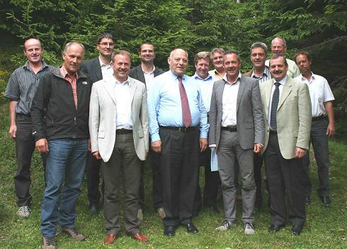 In primo piano, da sinistra a destra: Oswald Egger (sindaco di San Genesio); Bernhard Daum (sindaco di Nova Ponente); il presidente della provincia Luis Durnwalder; Albin Kofler (sindaco di Cornedi e presidente della Comunità comprensoriale Salto-Sciliar); Rolando Demetz (sindaco di Selva Gardena).
