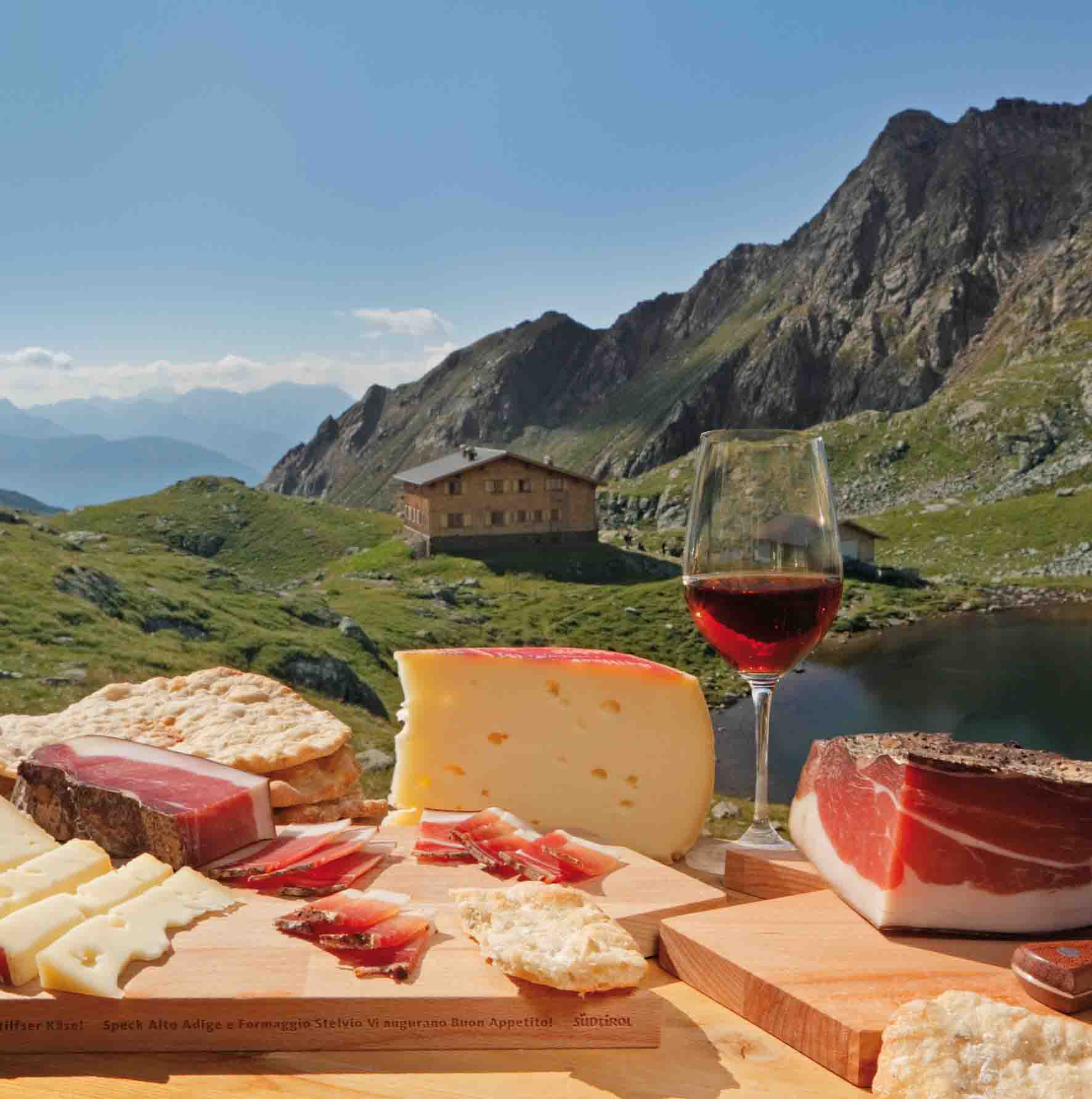 Veri e propri gioielli dell’enogastronomia: Speck Alto Adige IGP, formaggio Stelvio DOP e Schiava Alto Adige DOC