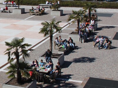 Foto 2: Un’immagine di “altri tempi”: studenti che si rilassano nel campus durante una pausa