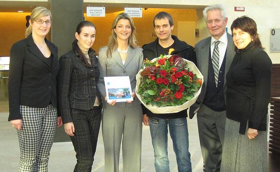 Veronika Bauer (assistente marketing Terme Merano), Manuela Zischg (responsabile marketing Terme Merano), Adelheid Stifter (direttrice Terme Merano), Markus Kofler (il 300.000° visitatore), Manfred König (presidente Terme Merano), Sonia Rungg (responsabile eventi Terme Merano)
