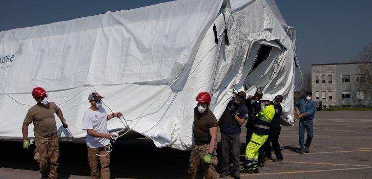 L’iniziativa d’aiuto “il Natale nella scatola di cartone” crea ospedali da campo in Italia
