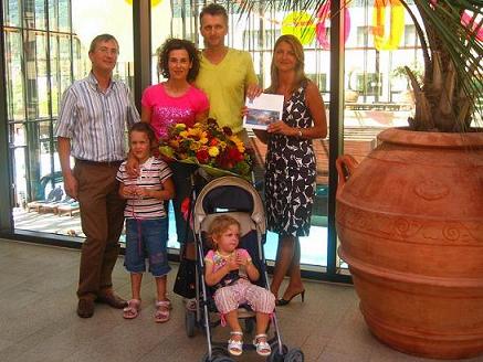 Ieri le Terme Merano hanno accolto il loro 500.000° visitatore. O, più esattamente, i loro quattro visitatori numero 500.000. Questo perché il biglietto con cui è stata raggiunta la soglia del mezzo milione di visitatori era quello “familiare” dei D’Andrea, una famiglia proveniente da Rauscedo in provincia di Pordenone. Il viticoltore Davide D’Andrea, sua moglie Cristiana e le due figliolette Margherita e Valentina sono apparsi visibilmente sorpresi dall’inaspettata accoglienza ricevuta all’ingresso delle Terme. Il presidente delle Terme Andreas Cappello e la direttrice Adelheid Stifter hanno salutato la famiglia con un mazzo di fiori estivi, consegnandole un buono per le Terme del valore di 100 €. La famiglia D’Andrea è già stata diverse volte in vacanza in Alto Adige, ma questa è la loro prima visita a Merano. Dopo aver letto articoli sulle Terme in varie riviste, quest’anno per la giovane coppia è stato inevitabile abbinare le vacanze in Alto Adige con una visita alle Terme Merano. Particolarmente interessante per la famigliola si è rivelata la vasca per i bambini, dove i più piccoli si possono sfogare in allegria.