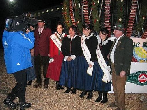 foto 1: le Regine dello Speck e la corona di Speck Alto Adige IGP come motivo preferito per le riprese televisive