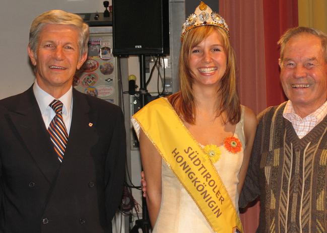 L’Assessore Provinciale Hans Berger, la regina altoatesina del miele Susanne Zuber e il vincitore della medaglia d’oro Alois Tumler