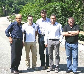 Ing. Hans Pfeifer (direttore lavori e progettista), ing. Bruno Eisenstecken (direttore tecnico eco-center SpA), ing. Lorenzo Agosti (ufficio tecnico eco-center SpA), Albin Kofler (Presidente della Comunità Comprensoriale di Salto-Sciliar) e Konrad Ausserer (Presidente eco-center SpAG) in occasione del sopralluogo in Valle Isarco