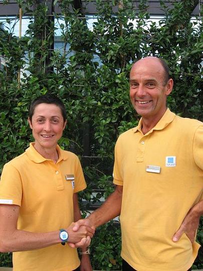 Edith Niederfriniger (premiata al campionato europeo e fitness trainer delle Terme Merano) e Andreas Streitberger (responsabile del Fitness Center delle Terme Merano)