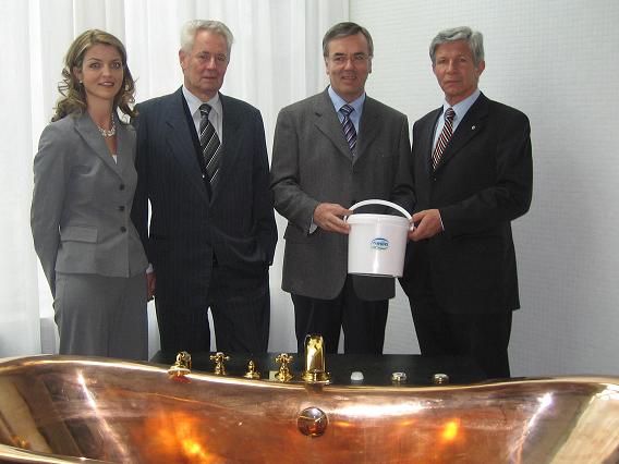 Adelheid Stifter (direttrice di Terme Merano), Manfred König (presidente di Terme Merano), Alfons Alber (presidente Milkon) e Hans Berger (Assessore all’Agricoltura)
